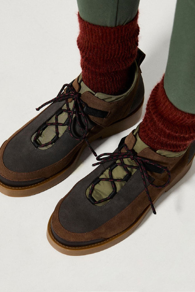 BERTHE es una zapatilla abotinada inspirada en el calzado de montaña. Combina piel serraje y tejido técnico sintético en un diseño robusto y versátil. El cierre con cordones asegura un buen ajuste, mientras que la plantilla extraíble de foam forrada en piel de vacuno natural aporta confort y transpirabilidad. Con suela de TR con tacón y huella tipo track, ofrece agarre y estabilidad. La caña de 8 cm y la puntera redonda completan un modelo pensado para el uso diario con estilo y comodidad.