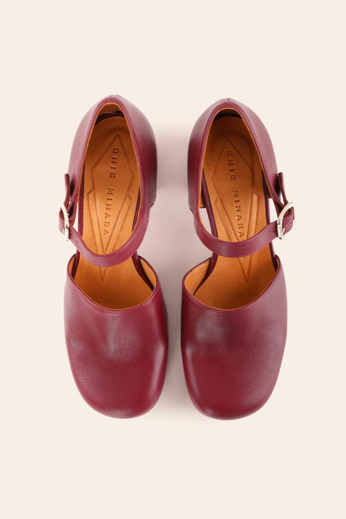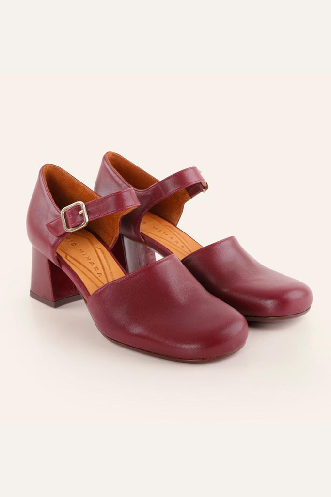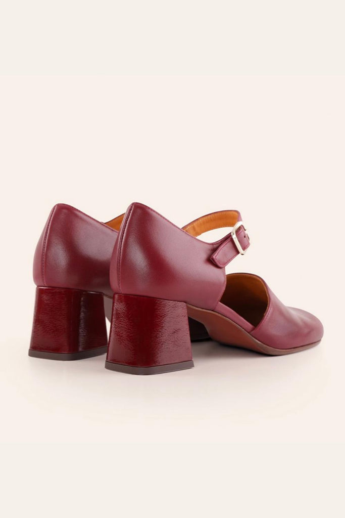 El diseño Morah Grape juega con los matices del burdeos y el granate en napa suave y charol laminado. Su tacón medio de 4,5 cm aporta un equilibrio perfecto entre comodidad y estilo, con cierre de hebilla y acabados artesanales característicos de Chie Mihara.