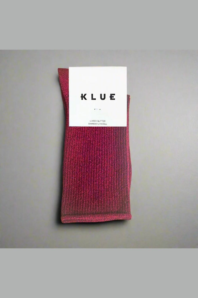 Calcetines brillantes de caña media en Lyocell de bambú con hilo lurex. Suaves, sostenibles y con un toque elegante y festivo. Fabricados por Klue en una gama de colores refinados.