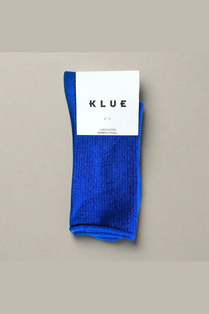 Calcetines brillantes de caña media en Lyocell de bambú con hilo lurex. Suaves, sostenibles y con un toque elegante y festivo. Fabricados por Klue en una gama de colores refinados.