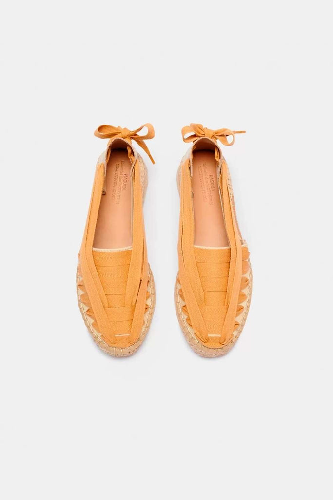 Soc Trail es un clásico de Naguisa, una alpargata inspirada en la «espardenya» de baile regional de siete cintas. La pala, al igual que las cintas, son de algodón y el corte del talón es de piel vacuna. Forro de piel. La planta es acolchada con foam y forrada de piel vacuna natural para dejar transpirar mejor tu pie. La suela está hecha con una trenza sencilla de yute, una pequeña cuña para mayor comodidad y suela de goma antideslizante de estilo deportivo. La altura total es de 3 cm.