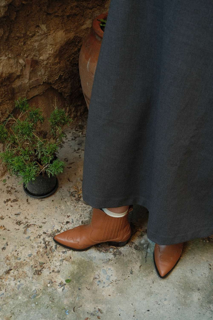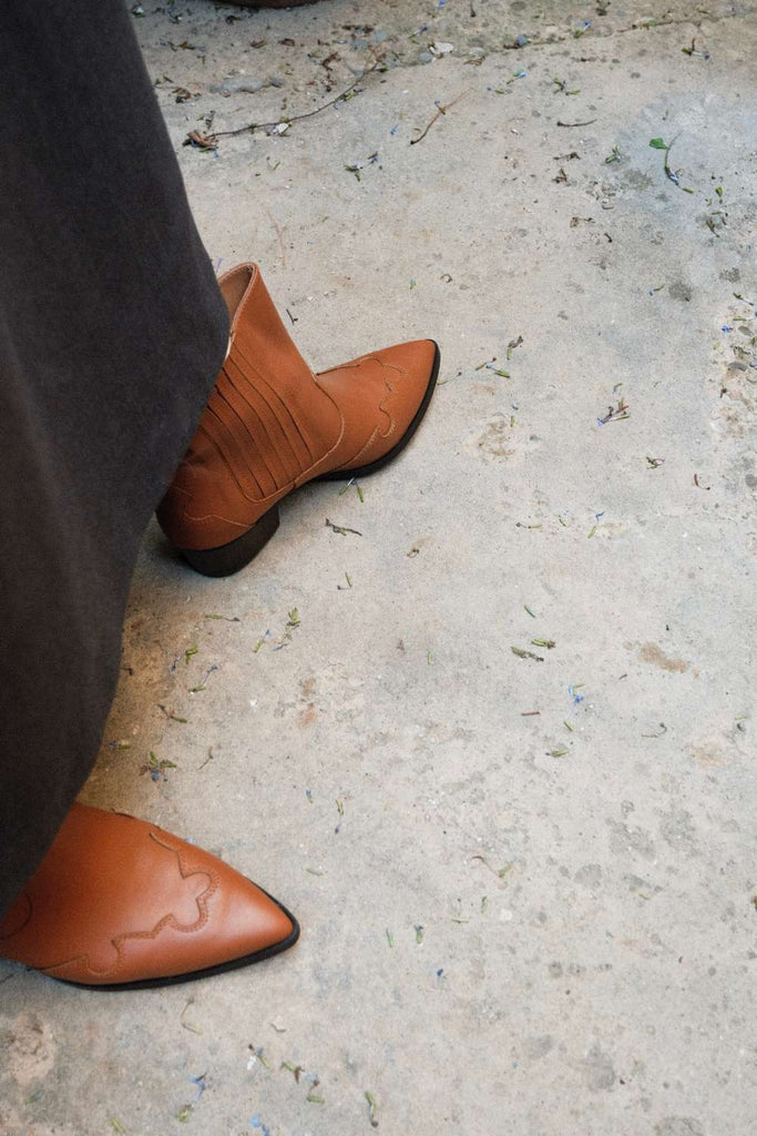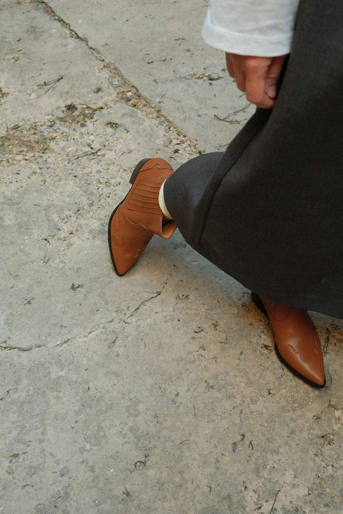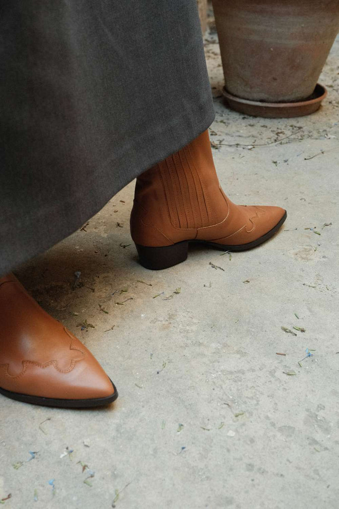 Botín campero de tacón cubano de 4 cm confeccionado en cuero camel.